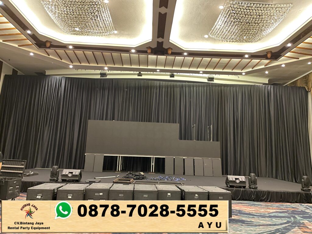 Sewa tirai hitam tebal event patrajasa Jakarta. Jangan ragu untuk menghubungi kami di Bintang Jaya untuk informasi lebih lanjut mengenai jasa sewa alat pesta. Tim kami siap membantu anda merencanakan acara yang sukses dan tak terlupakan. Segera pesan perlengkapan anda dan buat acara anda menjadi momen yang luar biasa!