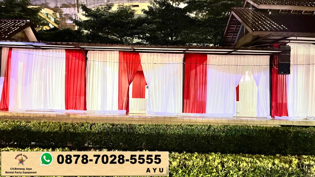 Rental tirai merah putih bahan filamin Jakarta. Bintang Jaya adalah pilihan tepat bagi anda yang ingin menyelenggarakan pesta dengan perlengkapan yang berkualitas. Kami menawarkan berbagai macam alat pesta, mulai dari tenda, kursi, meja, hingga dekorasi yang menarik. Semua peralatan yang kami sediakan dalam kondisi terbaik dan siap digunakan untuk memastikan acara anda berjalan lancar.