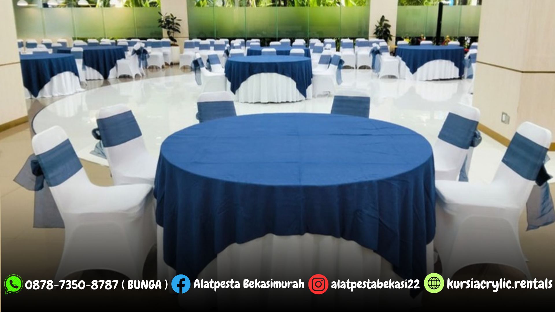 Pusat sewa alat pesta kami menyediakan Rental Kursi Futura dan Meja Bundar Dengan Cover Tebar Putih Jakarta. Kami siap melayani semua acara baik acara formal maupun informal dengan pelayanan terbaik.